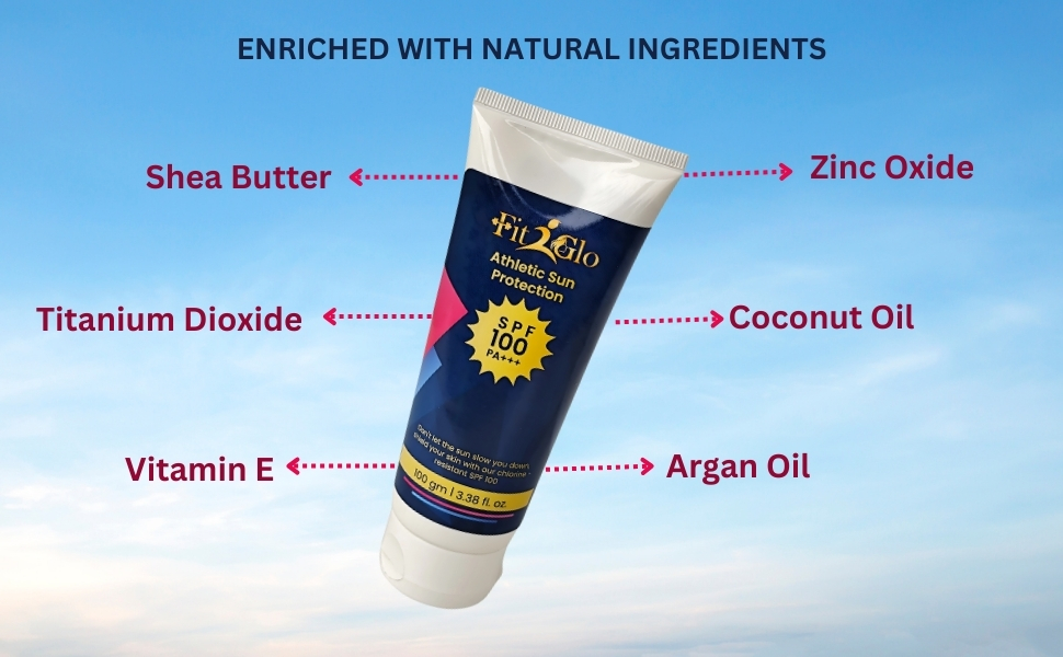 Discover Fit2Glo SPF 100+++ — the ultimate sunscreen for athletes. A non-greasy, sweat & water-resistant sunblock enriched with argan oil, shea butter & coconut oil for powerful, long-lasting protection.
